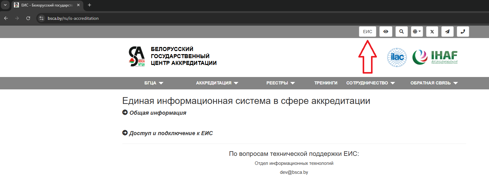 Доступ да АІС ажыццяўляецца з дапамогай сеціва Інтэрнэт па адрасе: https://accreditation.bsca.by. Таксама на нашым сайце ёсць кнопка, па націску на якую адбываецца перанакіраванне ў АІС