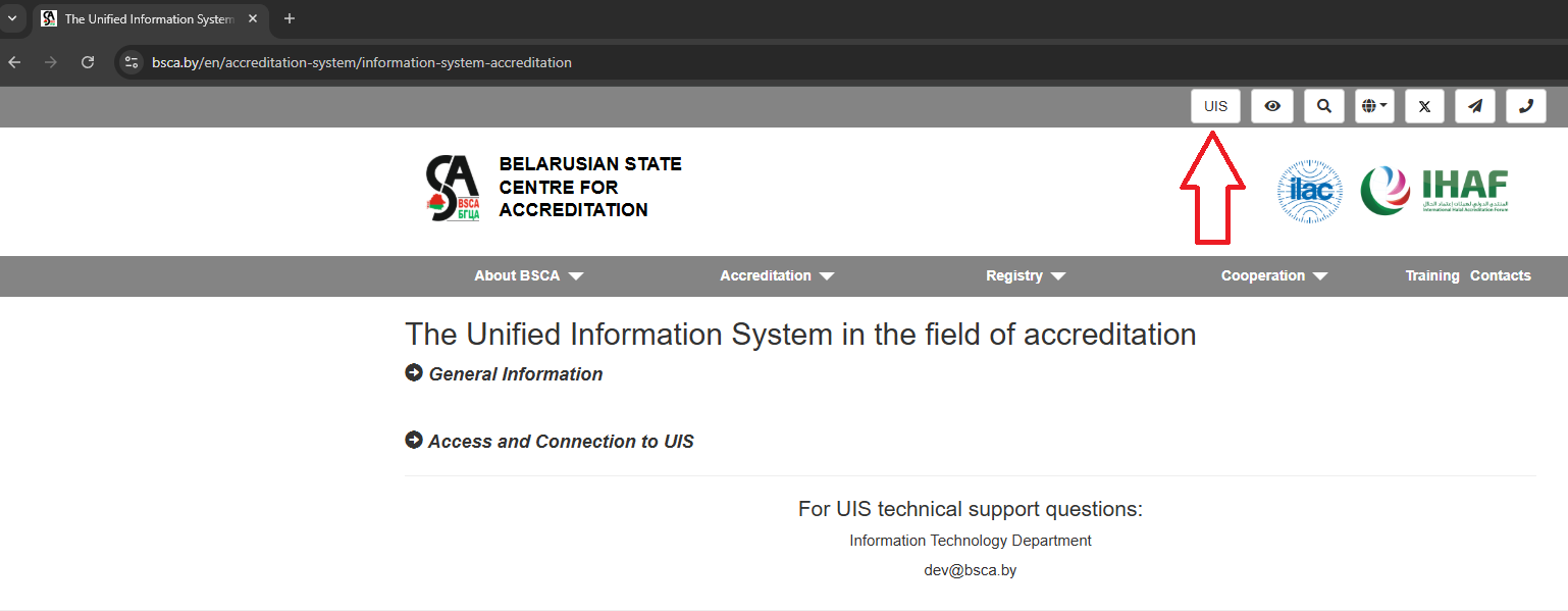 Access to the UIS is carried out via the Internet at: https://accreditation.bsca.by. There is also a button on our website that redirects to the UIS when clicked