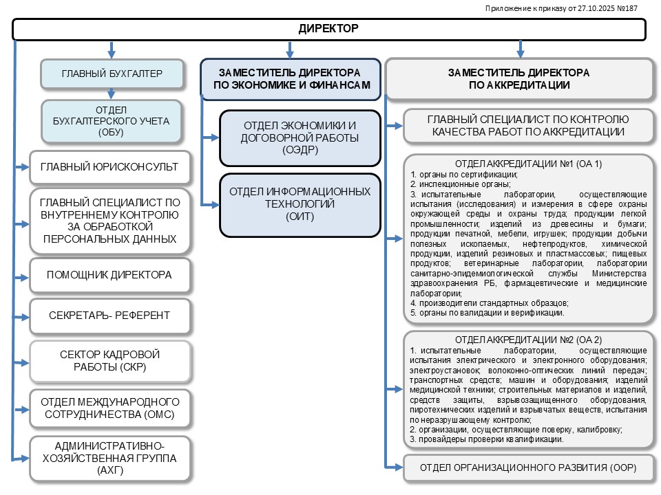 В соответствии с Законом Республики Беларусь от 11 октября 2024 г. № 33-З «Об аккредитации в Национальной системе аккредитации Республики Беларусь» орган по аккредитации осуществляет следующие функции: